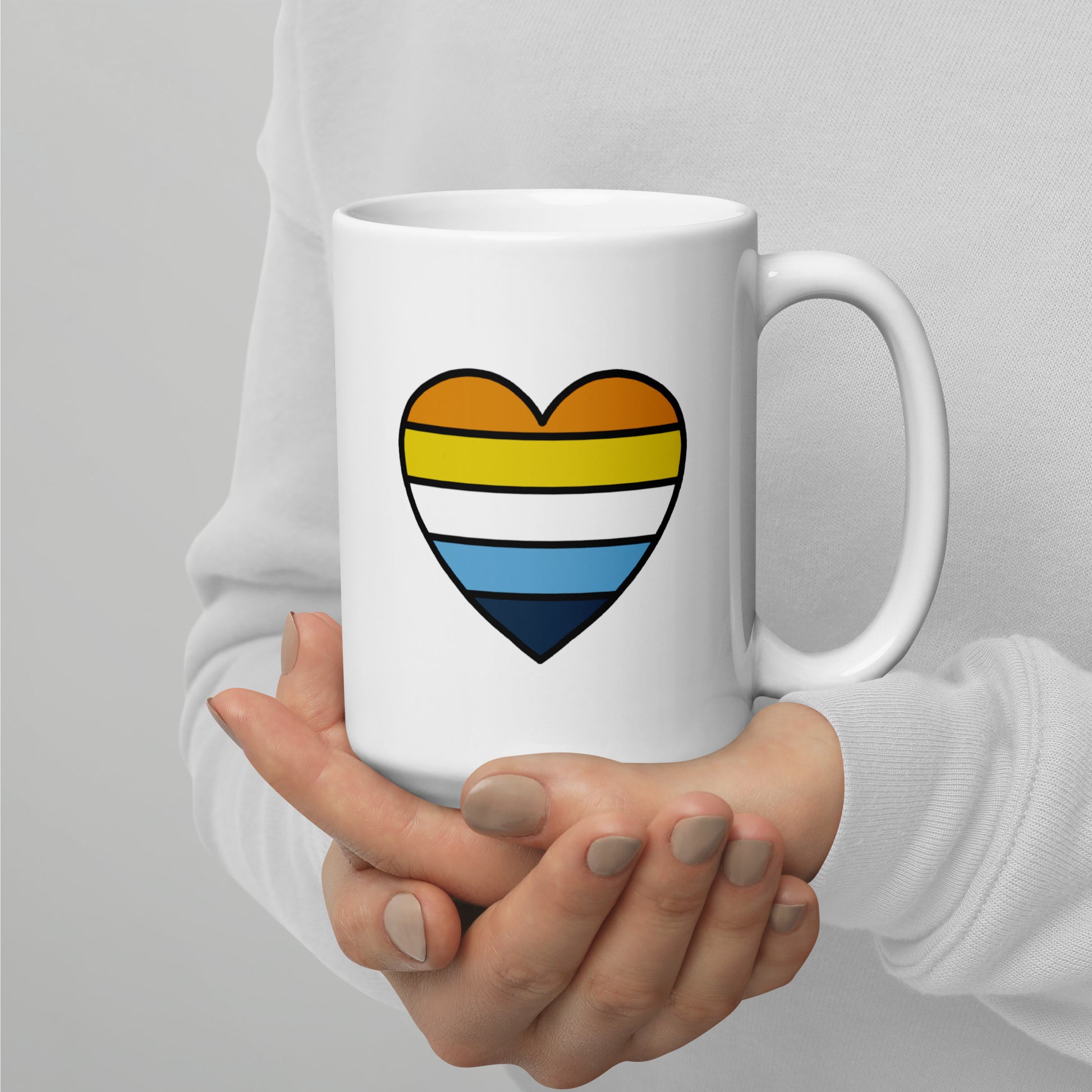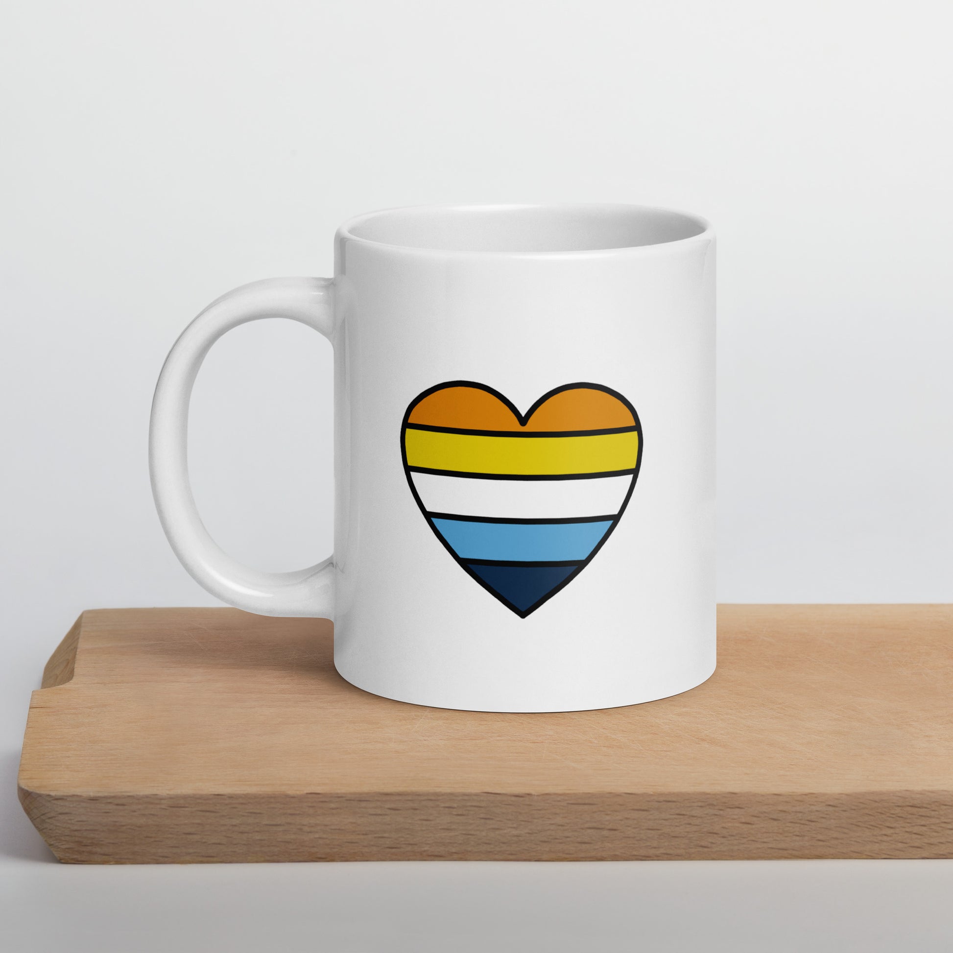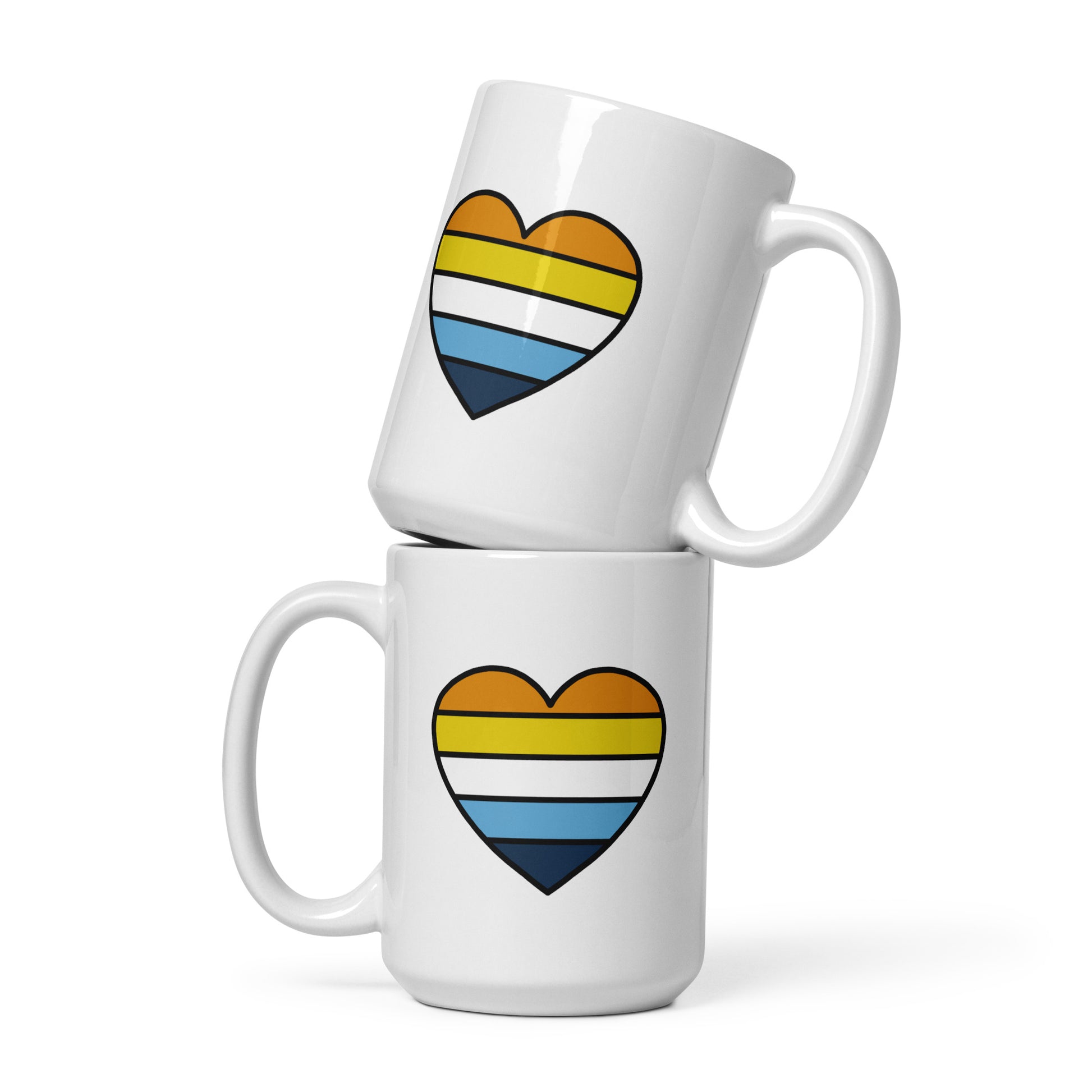 Start your day with warmth and pride. This ceramic mug features a heart design in the orange, yellow, white, black, and purple stripes of the aroace pride flag — a colorful and subtle way to celebrate identity every day. Whether you’re enjoying morning coffee or winding down with tea, this mug adds warmth and pride to every sip.