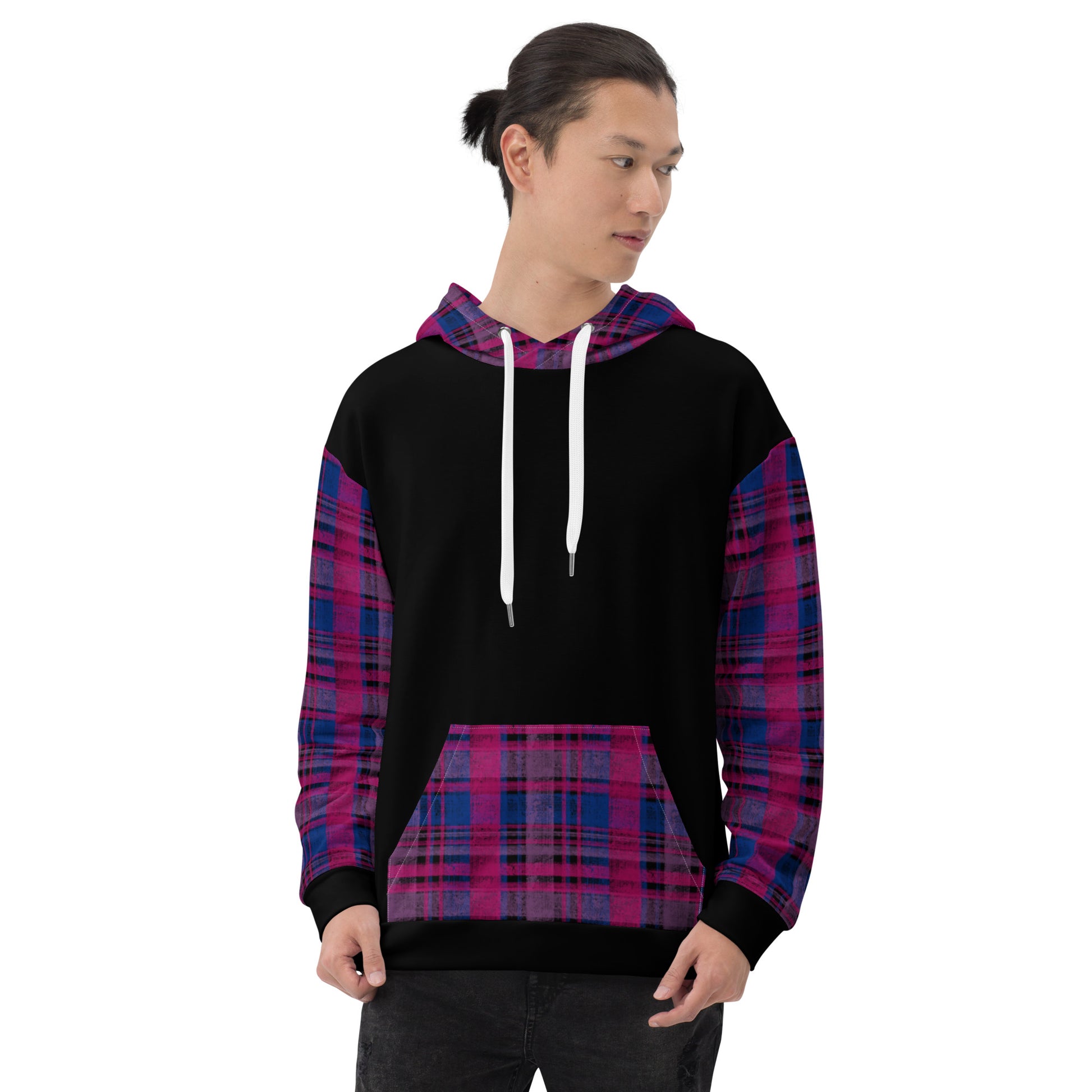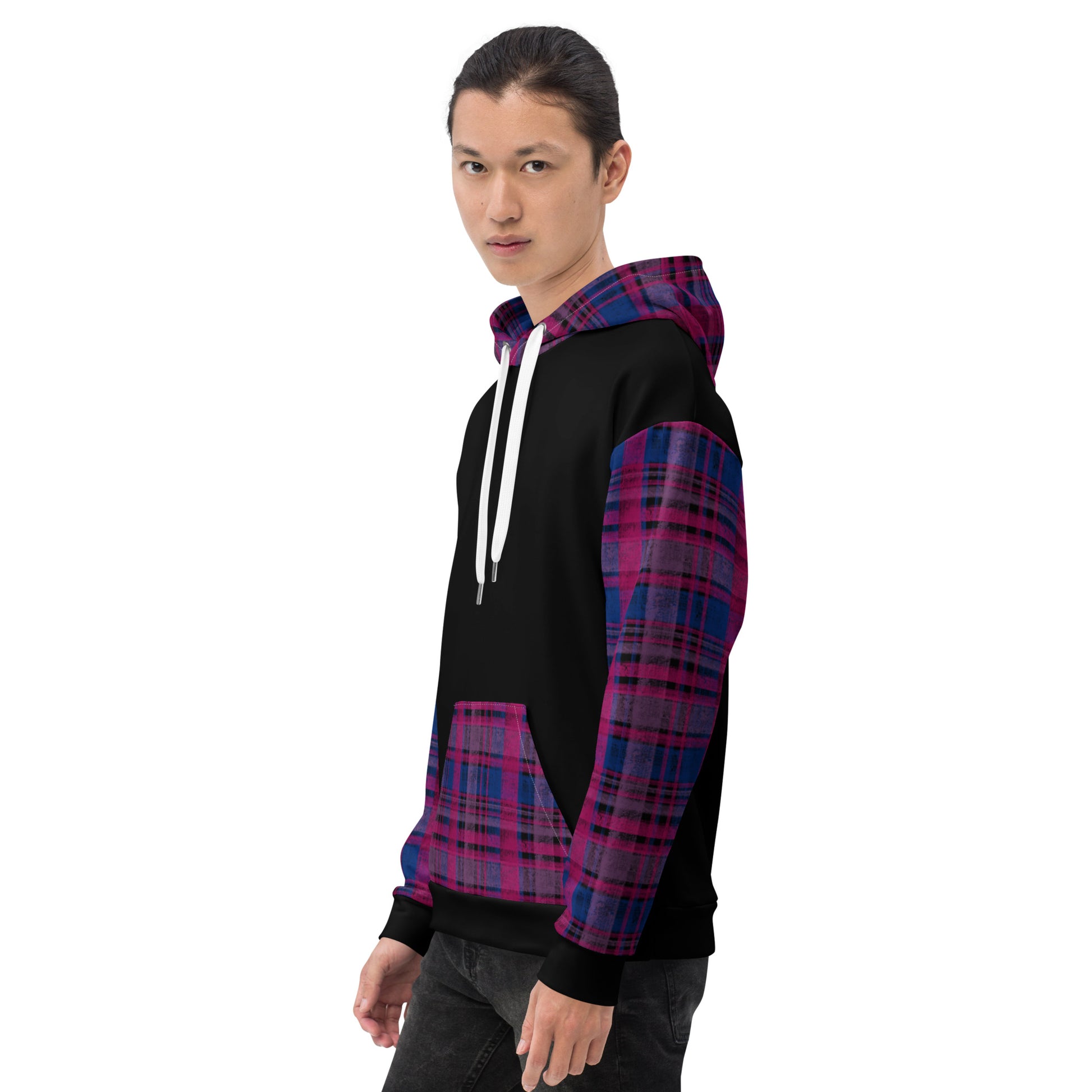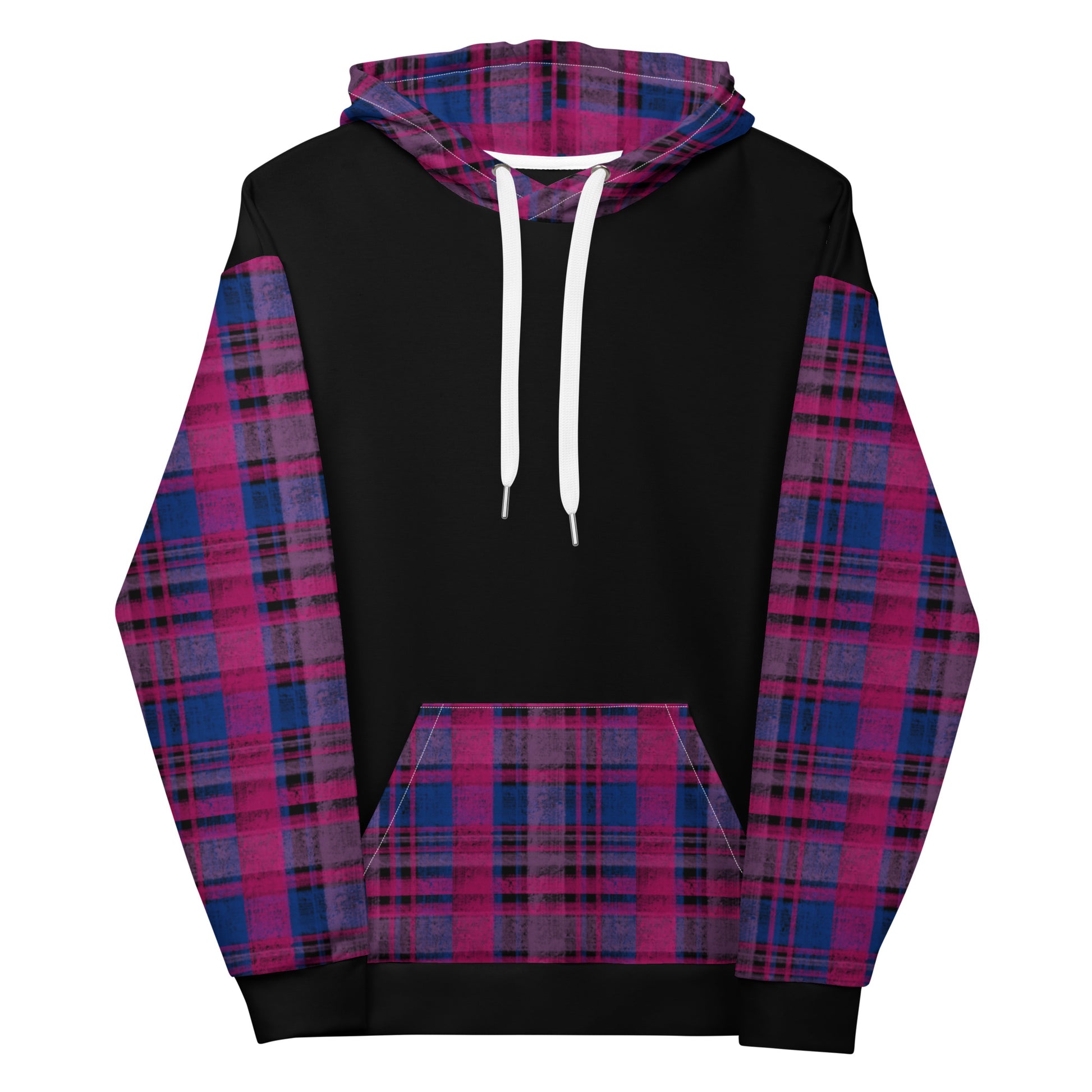 Soft, stylish, and perfectly bi. This unisex hoodie features a custom plaid pattern inspired by the magenta, lavender, and blue stripes of the bisexual pride flag — a cozy, colorful design that’s as versatile as it is vibrant. It’s the kind of hoodie you’ll want to live in, whether you’re out celebrating Pride or just relaxing at home.