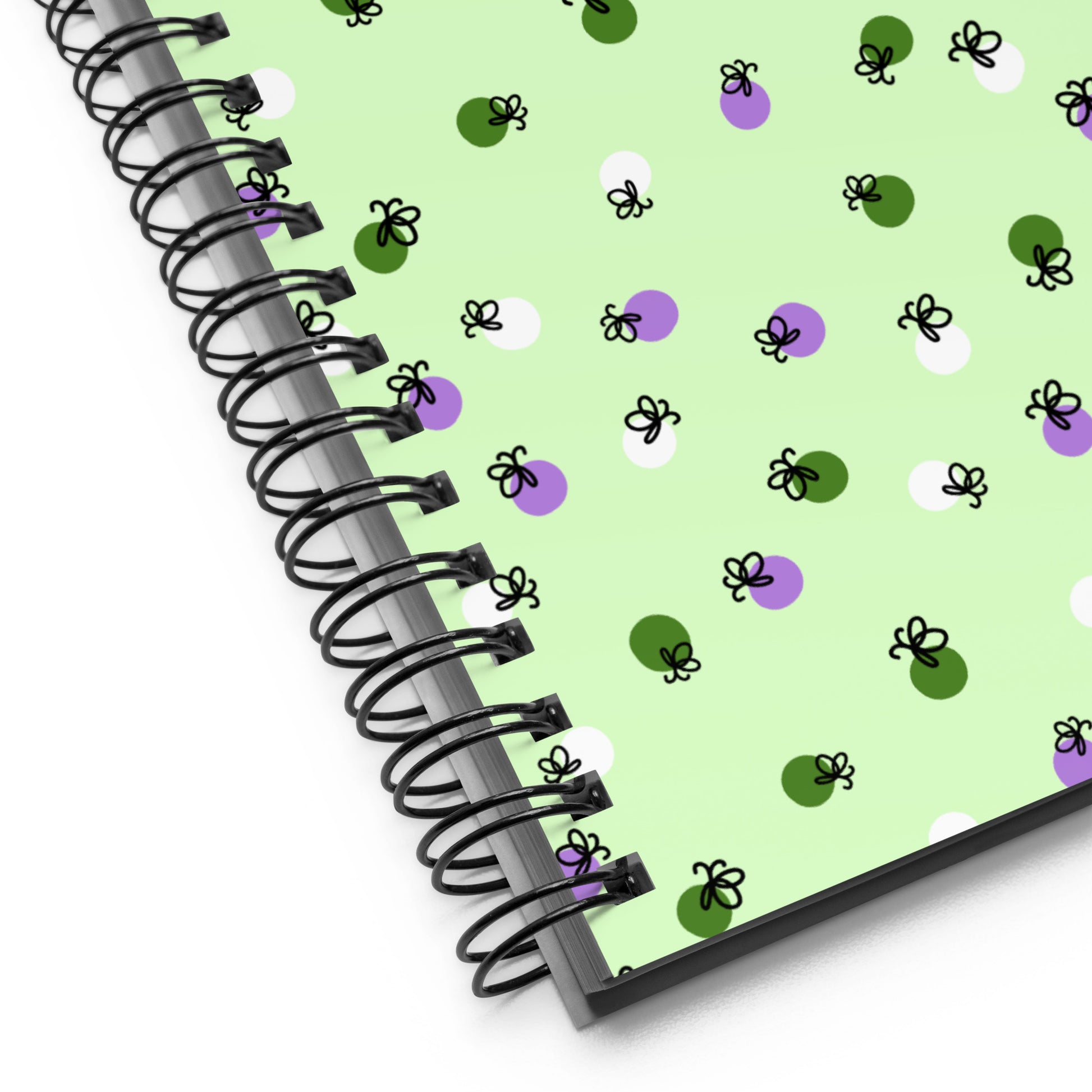 Capture your thoughts and let them shine. This spiral-bound notebook features a whimsical firefly design glowing in the lavender, white, and green colors of the genderqueer pride flag. Perfect for journaling, sketching, or planning, it’s a beautiful way to honor creativity and identity all in one.