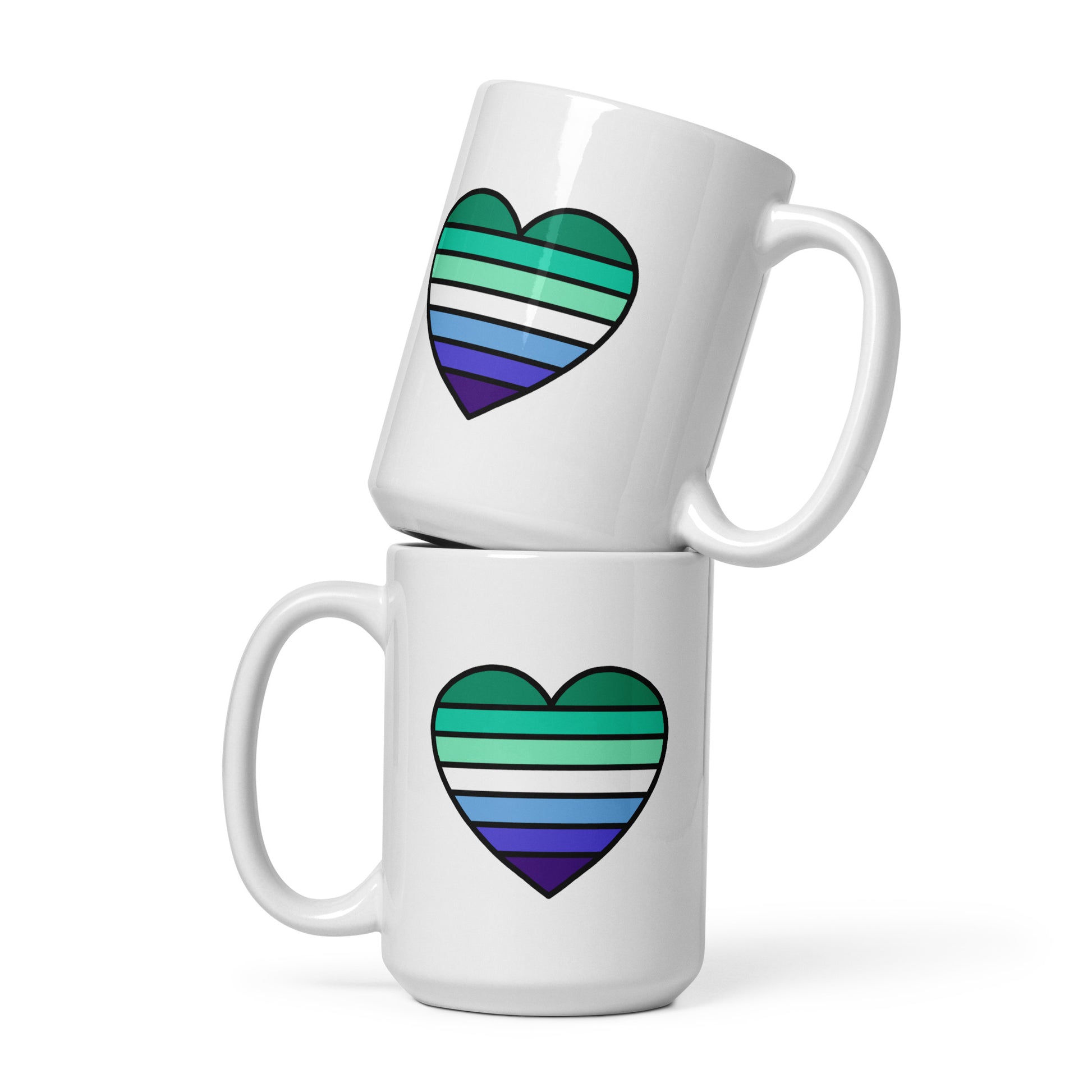 Start your day with warmth and pride. This ceramic mug features a heart design in the green, white, and blue stripes of the masculine gay pride flag — a simple yet powerful way to celebrate identity with every sip. Whether it’s morning coffee, afternoon tea, or a late-night recharge, this mug brings pride into every moment.