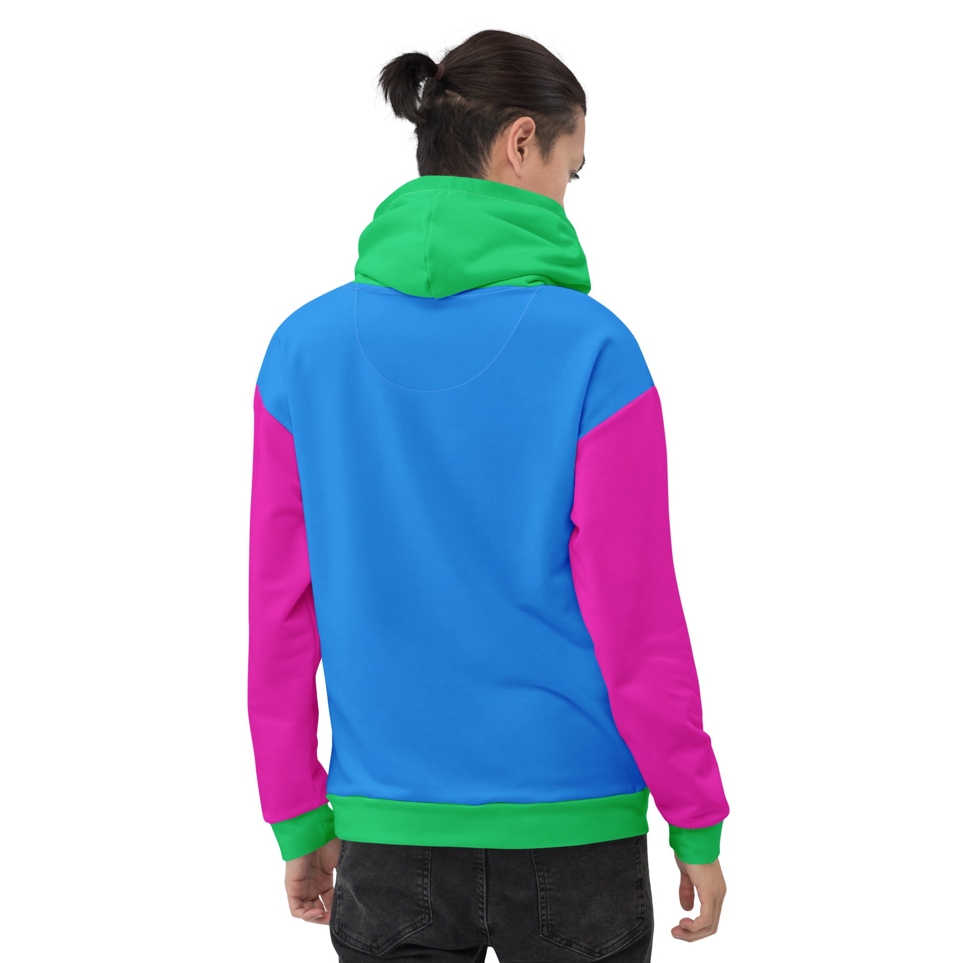 Vibrant, cozy, and full of pride. This unisex hoodie features color-blocked panels inspired by the pink, green, and blue stripes of the polysexual pride flag — a bright and modern way to celebrate identity. With a soft exterior, brushed fleece interior, and relaxed fit, it’s designed for comfort, confidence, and everyday wear.