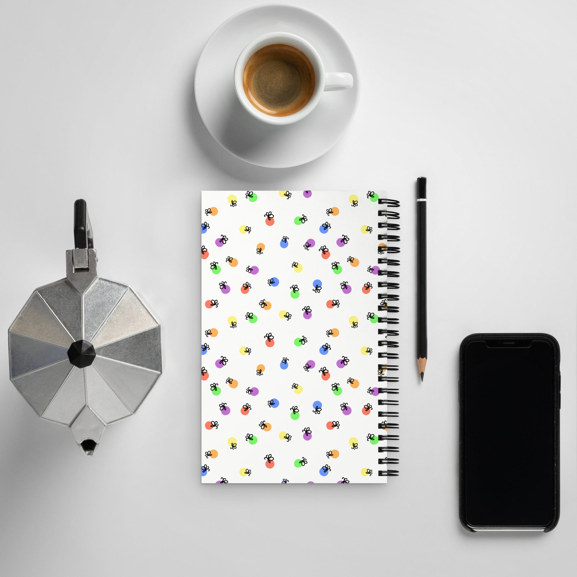 Let your imagination light up the page. This spiral-bound notebook features a whimsical firefly design glowing in the vibrant rainbow colors of the classic pride flag. It’s perfect for journaling, planning, or sketching — a joyful companion for capturing your brightest ideas and everyday thoughts.