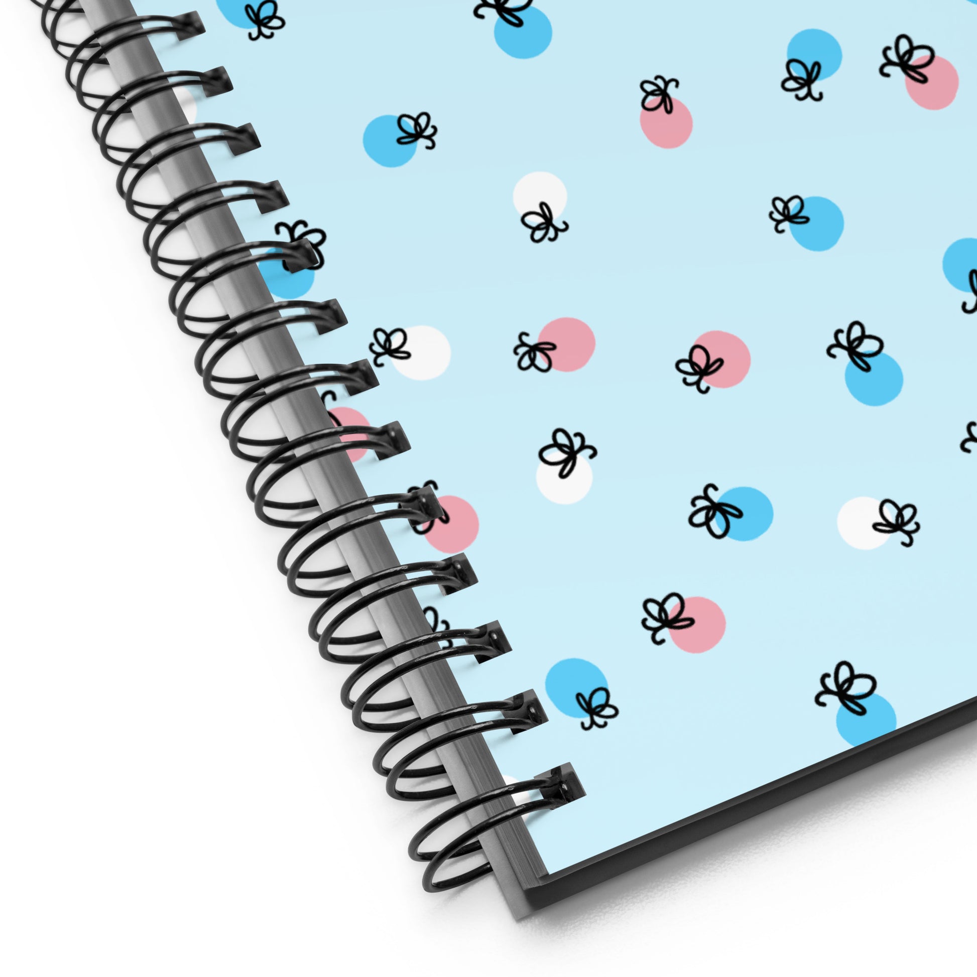 Light up your ideas with pride. This spiral-bound notebook features an adorable firefly design glowing in the pink, blue, and white colors of the transgender pride flag. Perfect for journaling, sketching, or planning, it’s a gentle reminder that your voice and creativity matter.